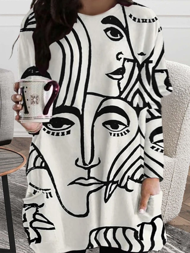 Women‘s Plus Size Curve T Shirt Dress Tee Dress Abstract Crew Neck Print Long Sleeve Winter Fall Casual Daily Vacation Dress