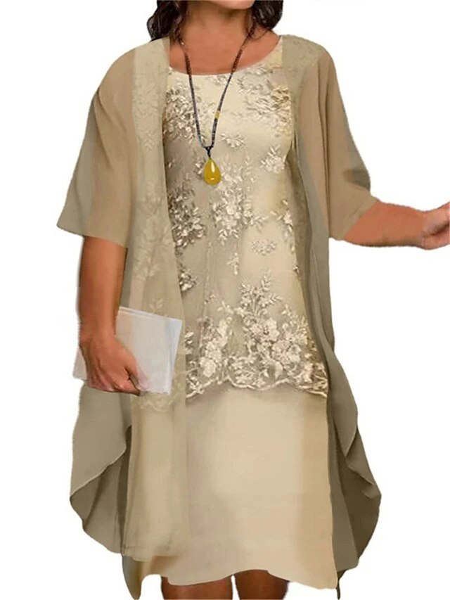 Women‘s Plus Size Curve Two Piece Dress Floral Crew Neck Print Half Sleeve Fall Spring Work Casual Knee Length Dress Casual Daily Dress