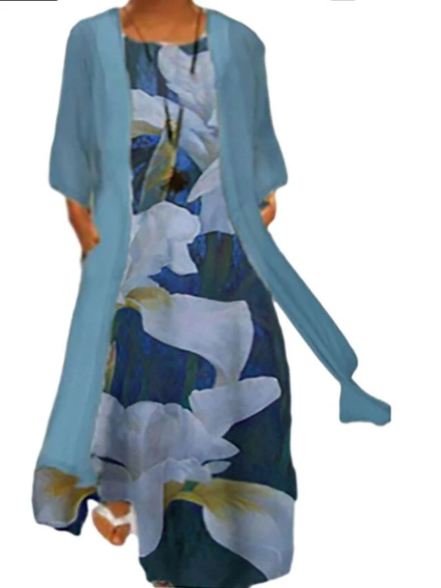 Women‘s Plus Size Curve Two Piece Dress Floral Crew Neck Print Long Sleeve Winter Fall Casual Maxi Long Dress Casual Daily Dress