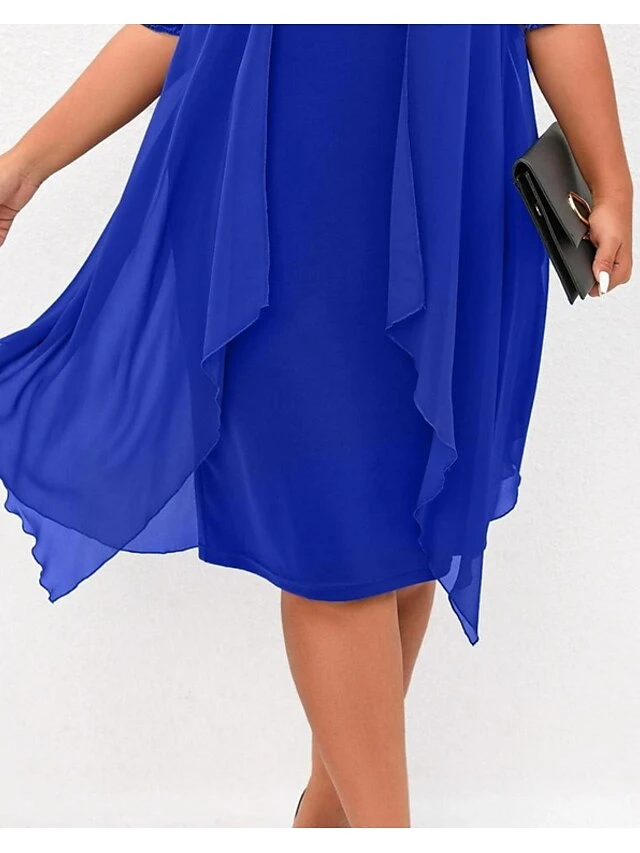Women‘s Plus Size Curve Work Dress Floral V Neck Layered Half Sleeve Fall Spring Elegant Midi Dress Formal Work Dress