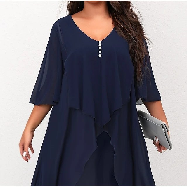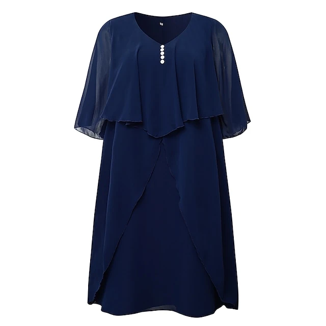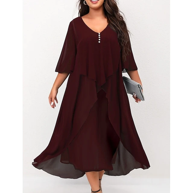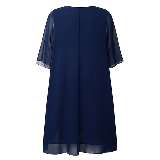 Women‘s Plus Size Curve Work Dress Holiday Dress Swing Dress Classic Holiday Date Vacation Midi Dress Ruched Mesh V Neck Half Sleeve Solid Color Plain Regular Fit Wine Dark Blue Fall Winter