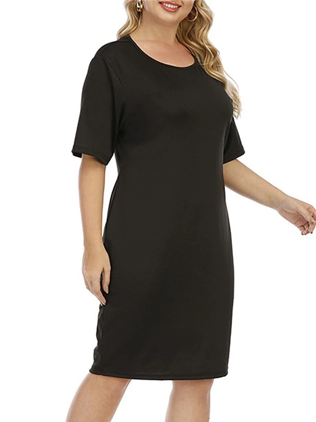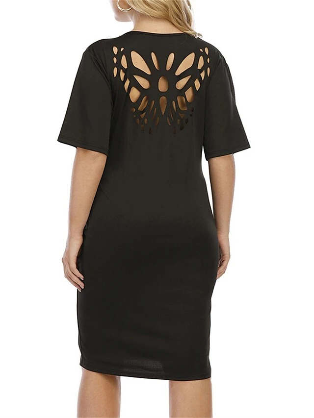 Women‘s Plus Size Curve Work Dress Sheath Dress Black Dress Fashion Midi Dress Cut Out Crew Neck Half Sleeve Plain Regular Fit Black Summer Spring L XL XXL 3XL 4XL