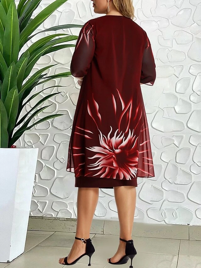 Women‘s Plus Size Curve Work Dress Shift Dress Graphic Midi Dress Half Sleeve Print Crew Neck Elegant Daily Wine Blue Spring Fall L XL XXL 3XL 4XL