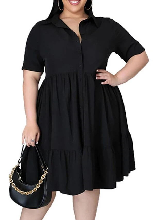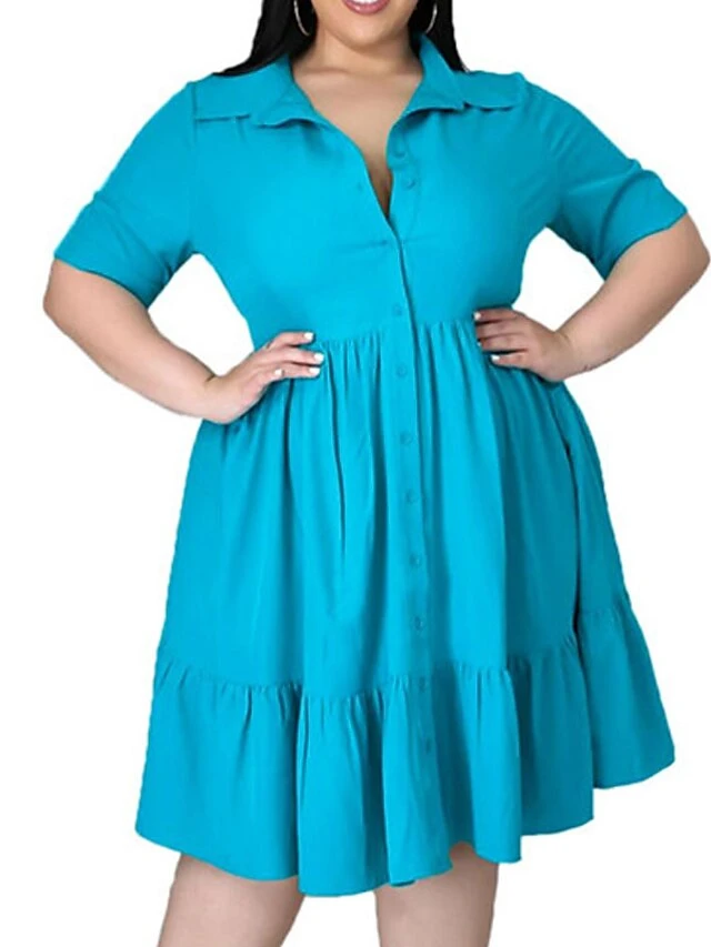 Women’s Plus Size Easter Dress Shirt Dress Solid Color Shirt Collar Ruched Half Sleeve Spring Fall Casual Preppy Knee Length Dress Casual Daily Dress
