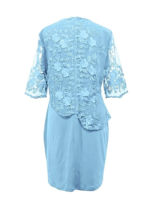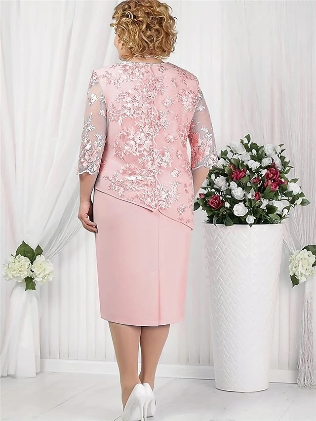Women’s Plus Size Party Dress Lace Dress Cocktail Dress Midi Dress Pink Blue Green 3/4 Length Sleeve Pure Color Lace Spring Fall Winter Crew Neck Fashion Winter Dress Wedding Guest Vacation 2023 L XL