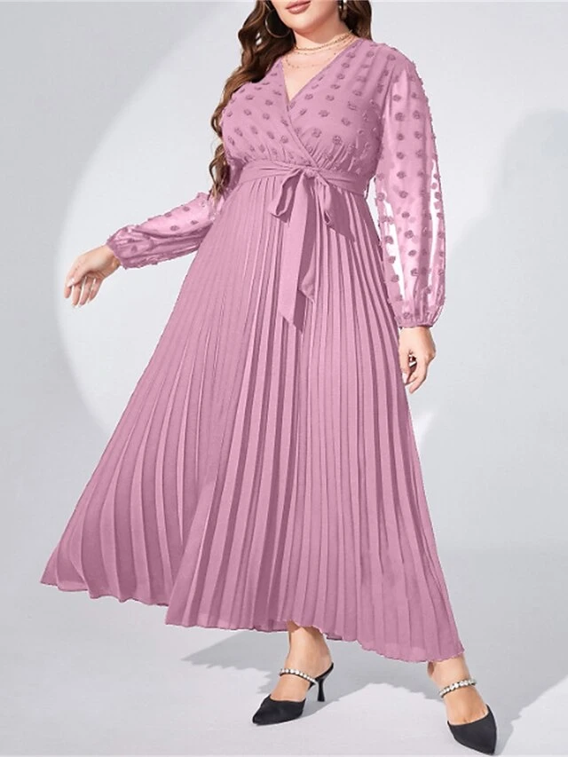 Women’s Plus Size Prom Dress Party Dress Wedding Guest Dress Long Dress Maxi Dress Light Purple Long Sleeve Pure Color Lace Up Fall Winter Autumn V Neck Fashion Winter Dress Evening Party Wedding