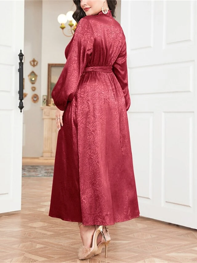 Women’s Plus Size Prom Dress Party Dress Wedding Guest Dress Long Dress Maxi Dress Wine Long Sleeve Pure Color Lace Up Fall Winter Autumn Crew Neck Fashion Winter Dress Wedding Guest Evening Party