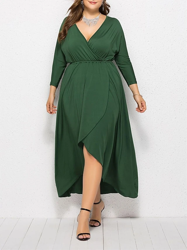 Women’s Plus Size Work Dress Black Dress A Line Dress Fashion Long Dress Maxi Dress Ruched V Neck Long Sleeve Plain Loose Fit Black Wine Dark Green Fall XL XXL 3XL 4XL