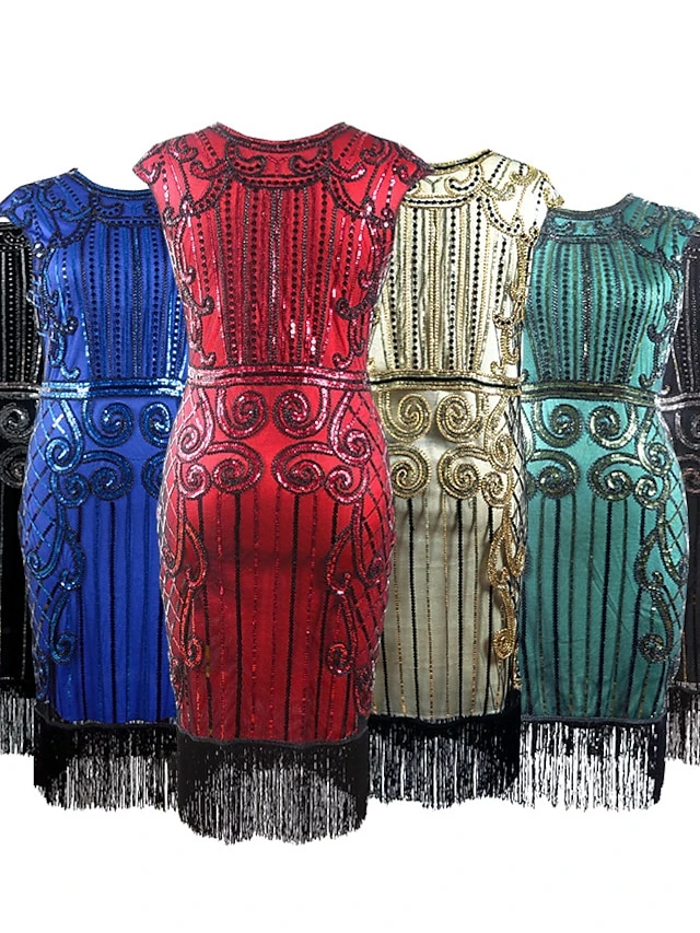 Women’s Retro 1920s Fringe Dress Midi Dress Party Halloween Sequins Tassel Fringe Floral Crewneck Sleeveless Regular Fit Spring Fall 2023 Black Burgundy S M L XL