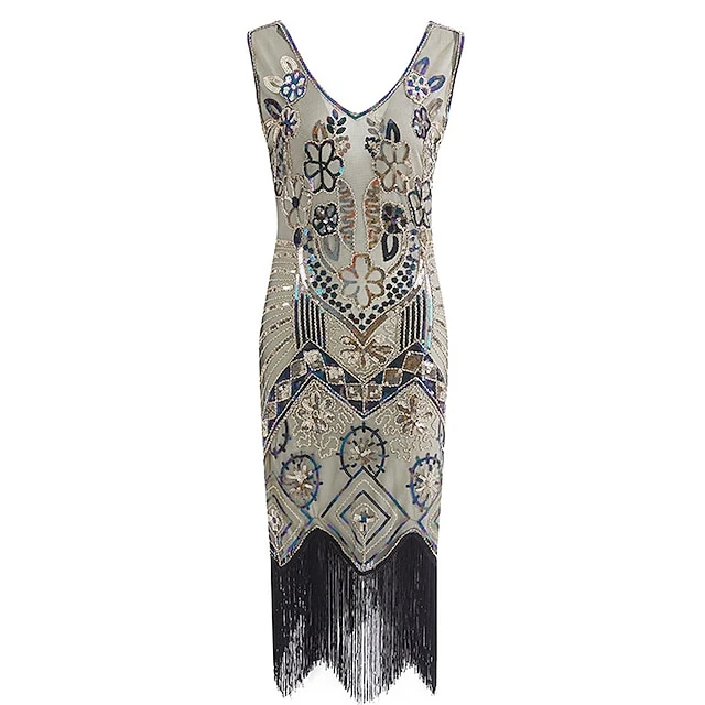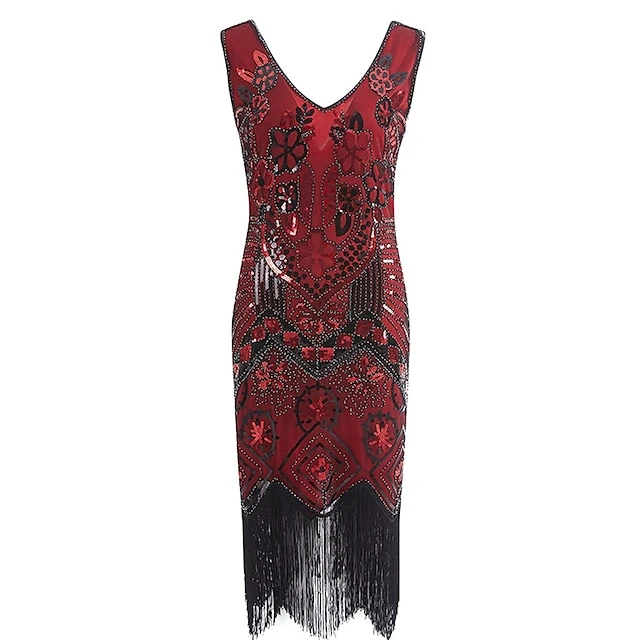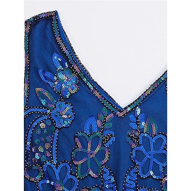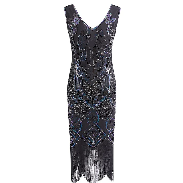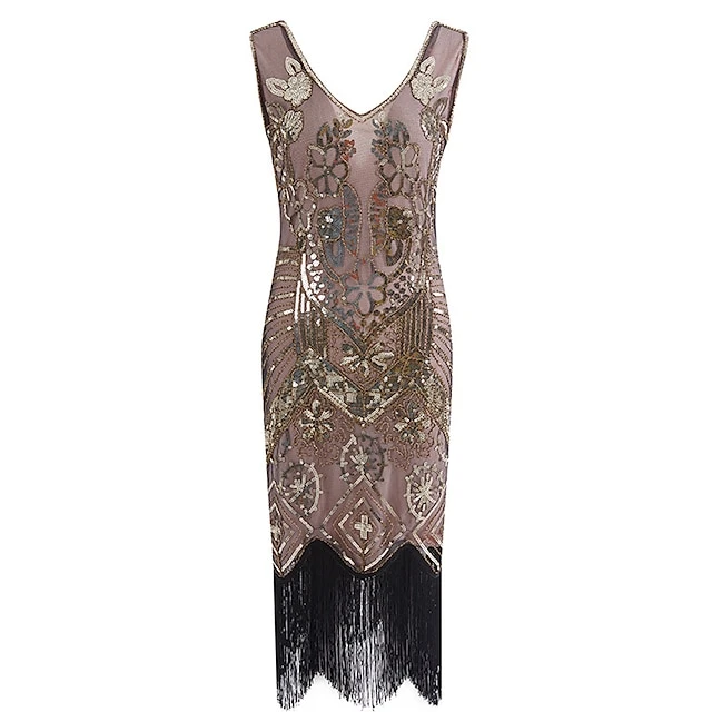 Women’s Retro 1920s Fringe Dress Midi Dress Party Halloween Sequins Tassel Fringe Floral V Neck Sleeveless Regular Fit Spring Fall 2023 Black Pink S M L XL