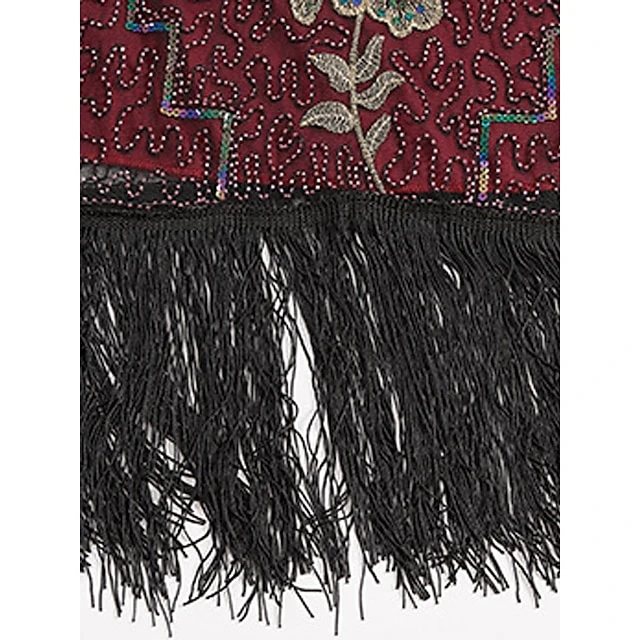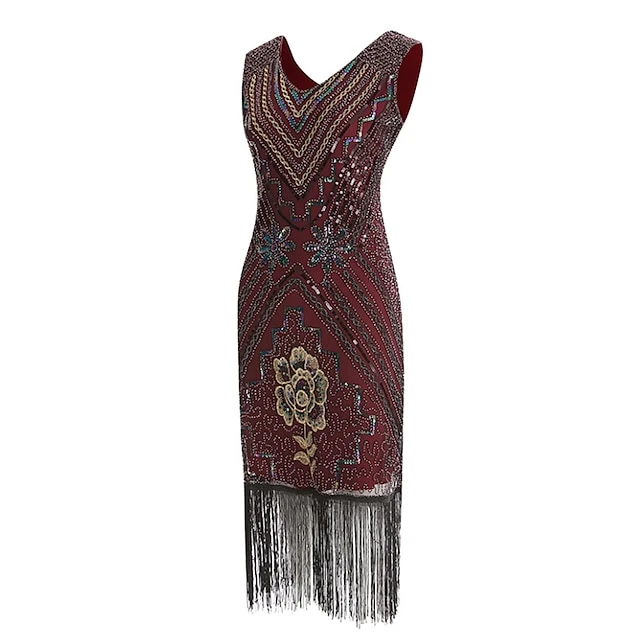 Women’s Retro 1920s Fringe Dress Midi Dress Party Halloween Sequins Tassel Fringe Floral V Neck Sleeveless Regular Fit Spring Fall 2023 Black Red S M L XL