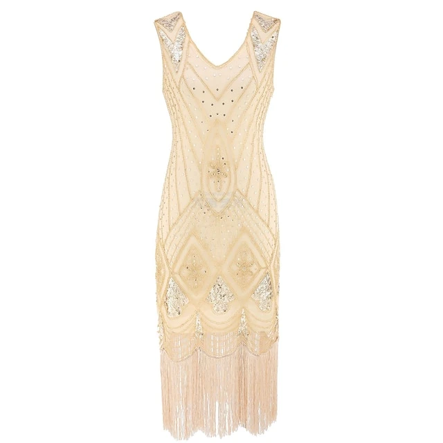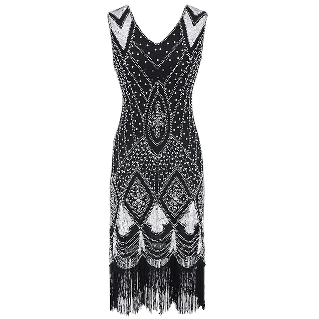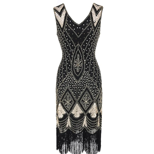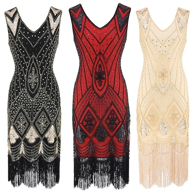 Women’s Retro 1920s Fringe Dress Midi Dress Party Halloween Sequins Tassel Fringe Geometric V Neck Sleeveless Regular Fit Spring Fall 2023 Black Red S M L XL