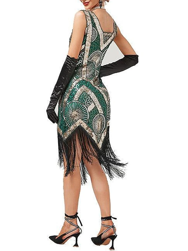 Women’s Retro 1920s Fringe Dress Midi Dress Party Halloween Sequins Tassel Fringe Geometric V Neck Sleeveless Regular Fit Spring Fall 2023 Black Red XS S M L