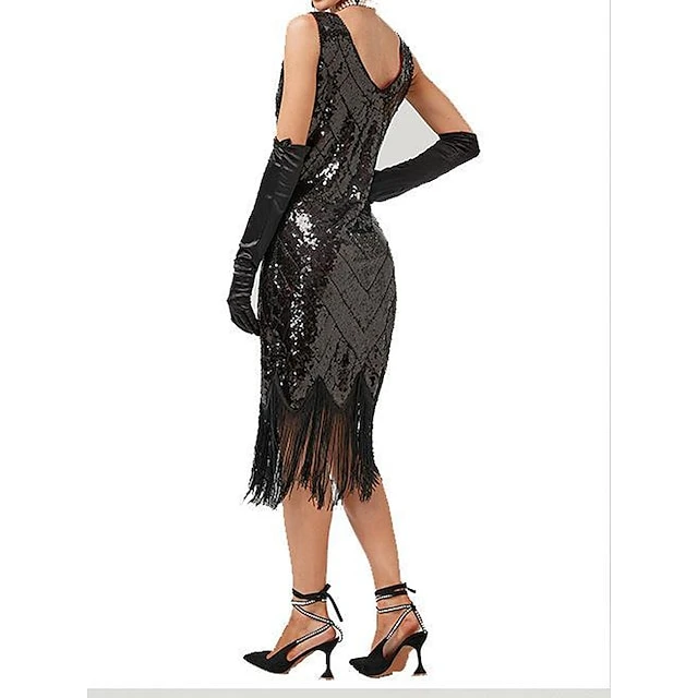 Women’s Retro 1920s Fringe Dress Midi Dress Party Halloween Sequins Tassel Fringe Geometric V Neck Sleeveless Regular Fit Spring Fall 2023 Silver Black XS S M L