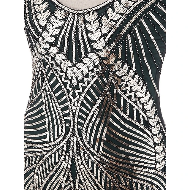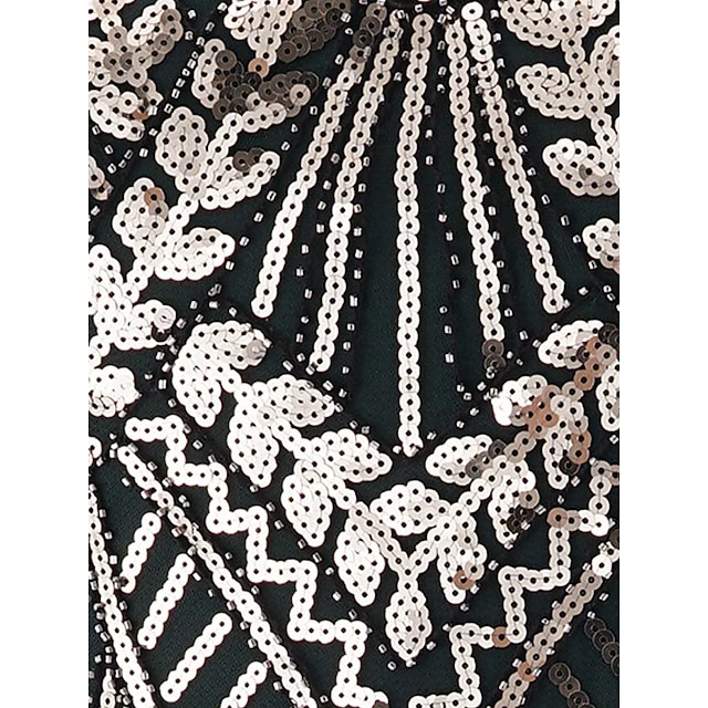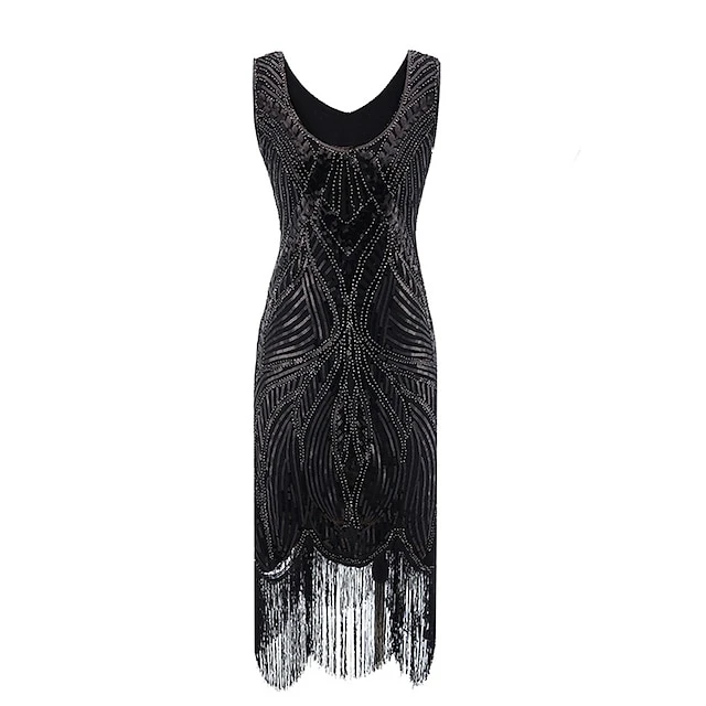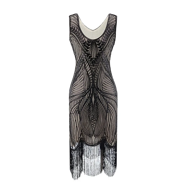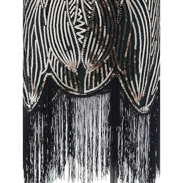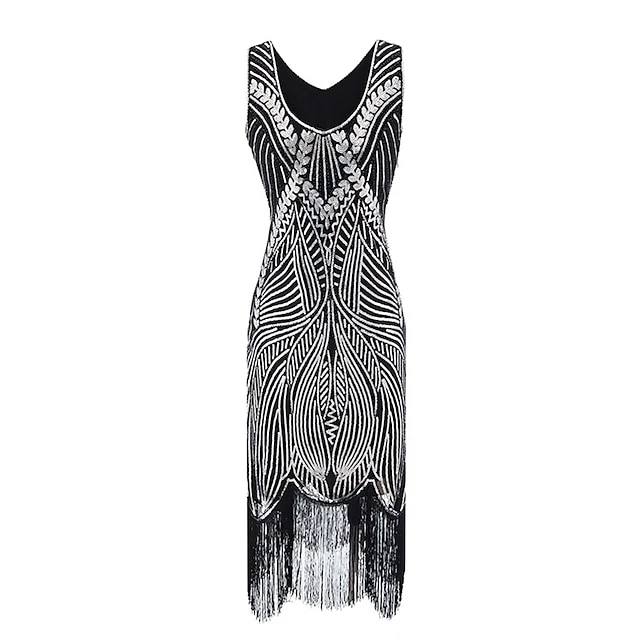 Women’s Retro 1920s Fringe Dress Midi Dress Party Halloween Sequins Tassel Fringe Leaf Deep U Sleeveless Regular Fit Spring Fall 2023 Silver Black S M L XL