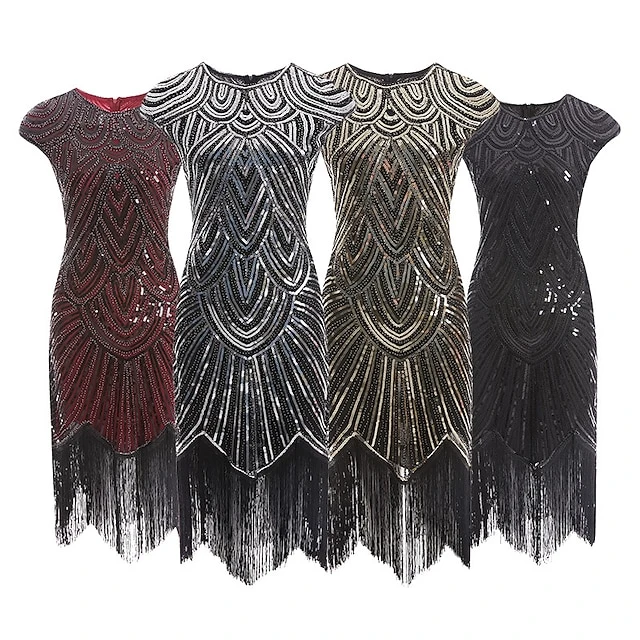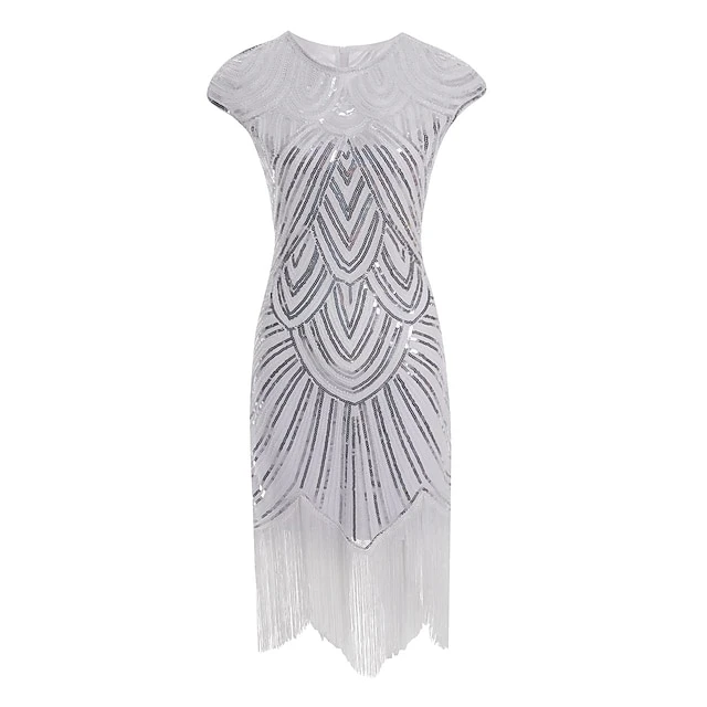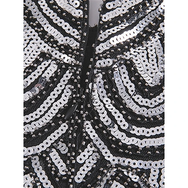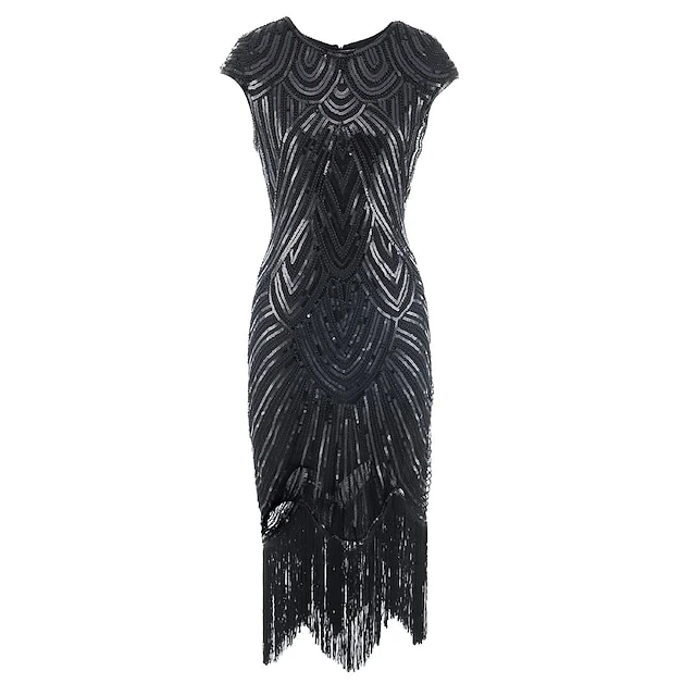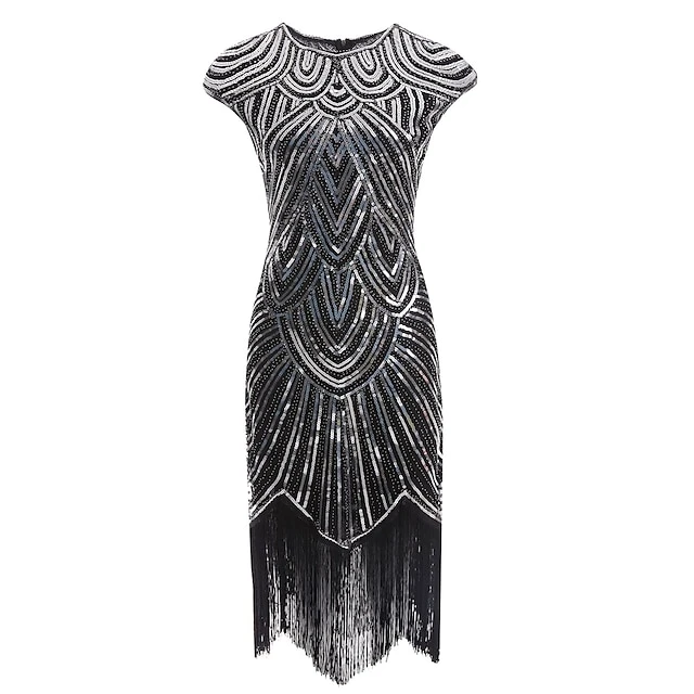 Women’s Retro 1920s Fringe Dress Midi Dress Party Holiday Sequins Tassel Fringe Geometric Crewneck Short Sleeve Regular Fit Spring Fall 2023 Silver Black XS S M L