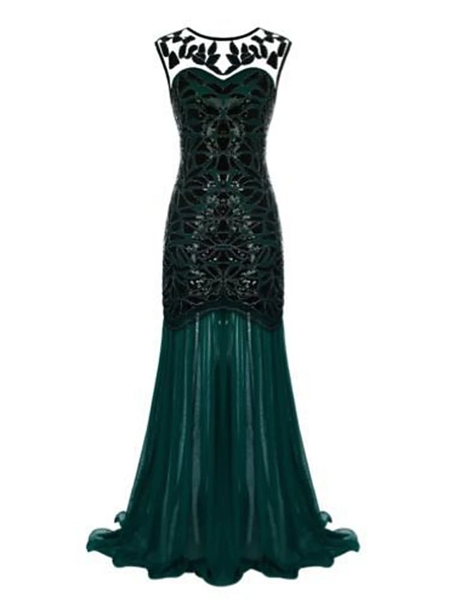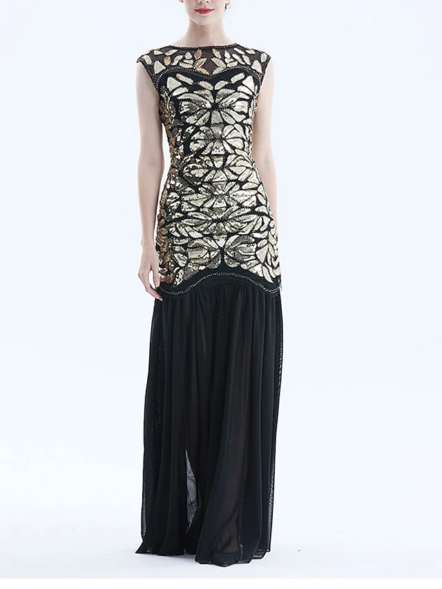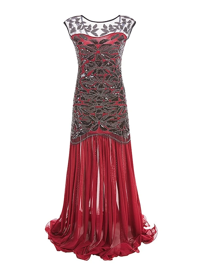 Women’s Retro 1920s Sequin Dress Long Dress Maxi Dress Party Halloween Sequins Ruffle Leaf Crewneck Sleeveless Regular Fit Spring Fall 2023 Black Red S M L XL