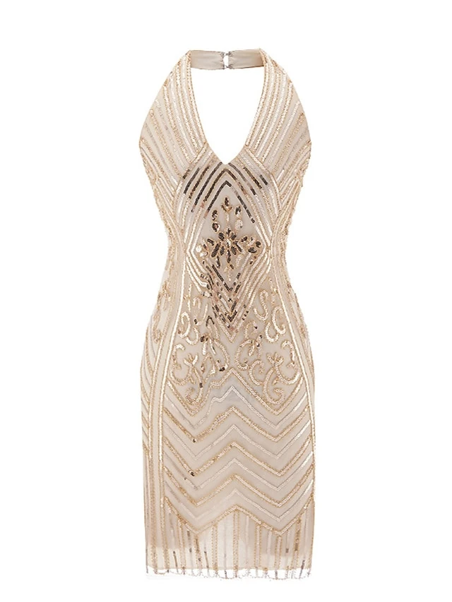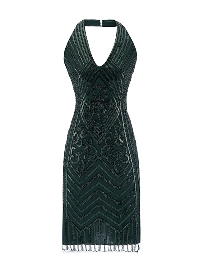 Women’s Retro 1920s Sequin Dress Mini Dress Party Halloween Sequins Patchwork Floral Halter Neck Sleeveless Regular Fit Spring Fall 2023 Black Green S M L XL