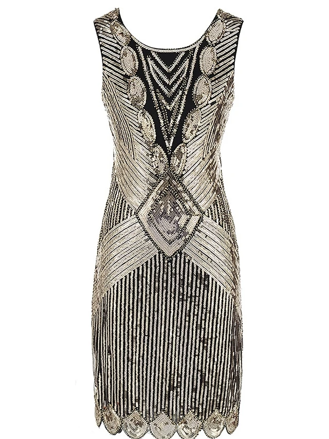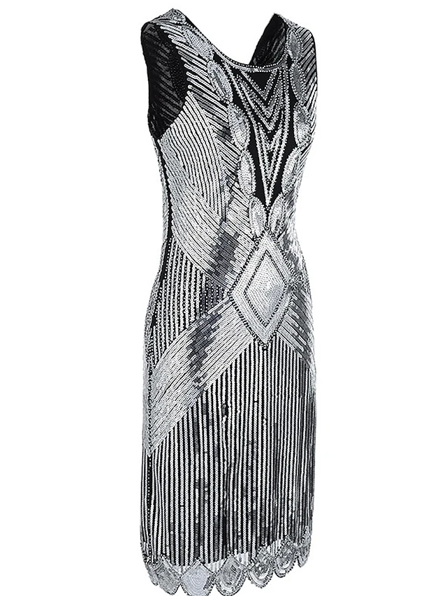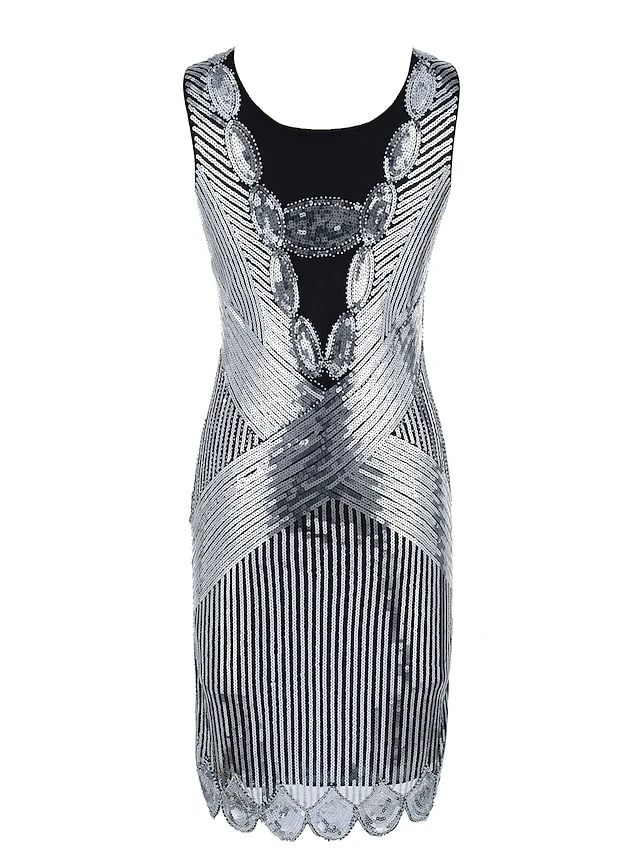 Women’s Retro 1920s Sequin Dress Mini Dress Party Halloween Sequins Patchwork Geometric Crewneck Sleeveless Regular Fit Spring Fall 2023 Silver Black S M L XL