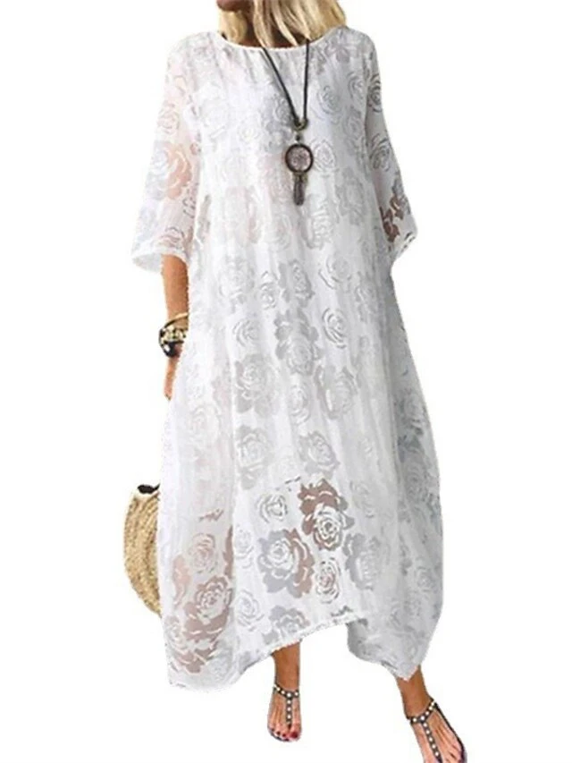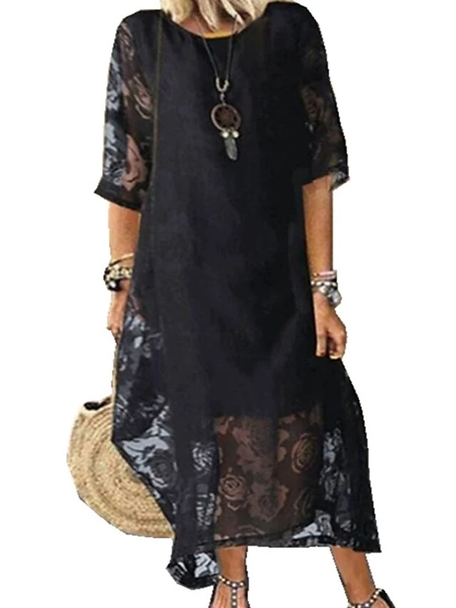 Women’s Shift Dress Swing Dress Long Dress Maxi Dress Black Red White Half Sleeve Floral Lace Winter Fall Spring Crew Neck Mature Weekend 2023 S M L XL XXL 3XL 4XL 5XL