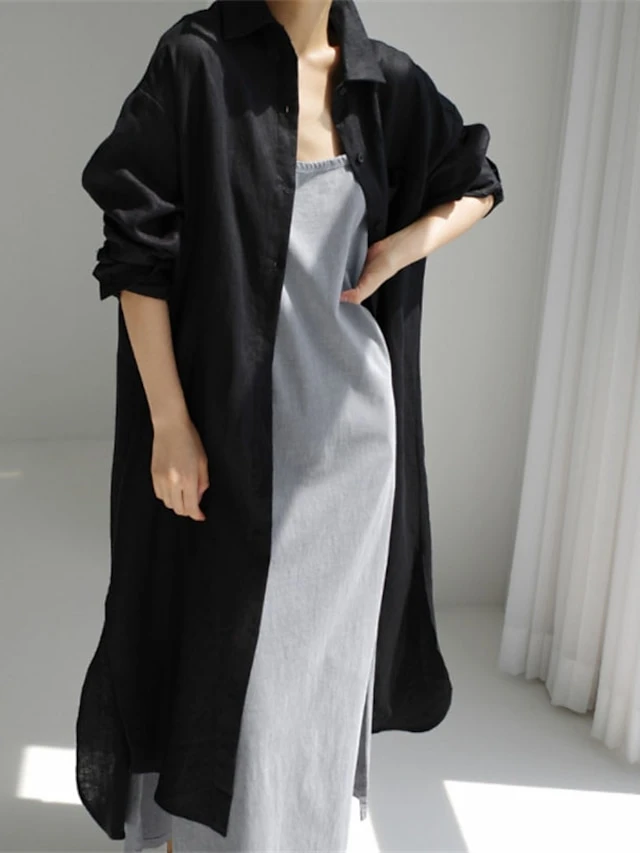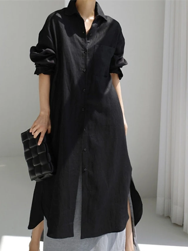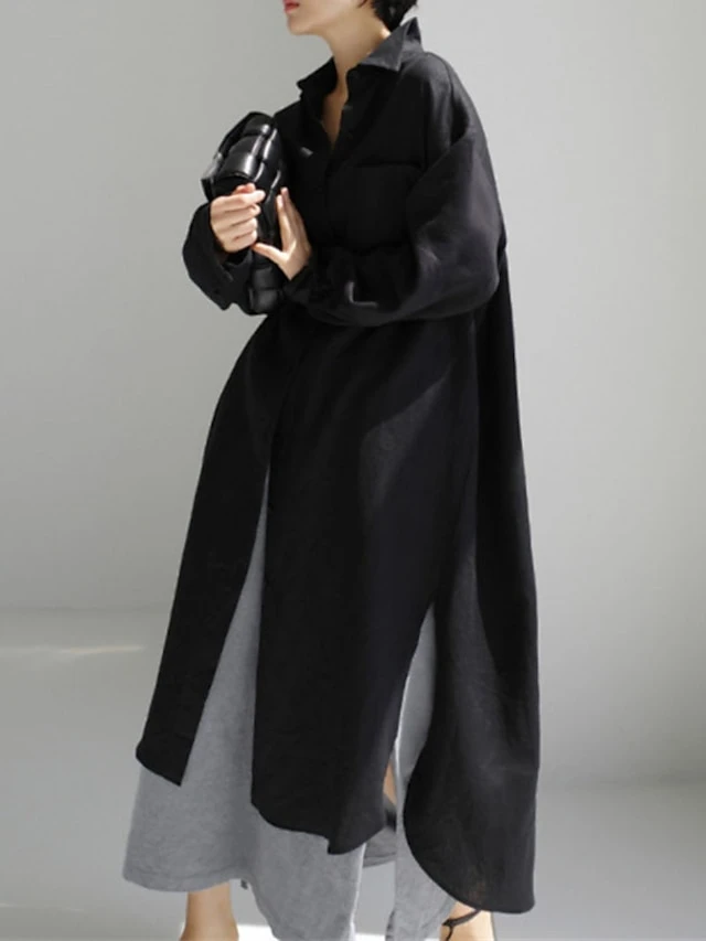 Women’s Shirt Dress Casual Dress Linen Dress Maxi Long Dress Winter Dress Daily Holiday Polyester Casual Mature Shirt Collar Zipper Button Long Sleeve Summer Spring Fall 2023 Loose Fit Black Navy