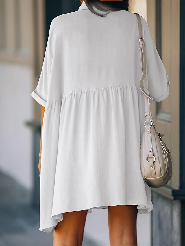 Women’s Shirt Dress Casual Dress Mini Dress Outdoor Daily Cotton Basic Casual Shirt Collar Ruched Button Half Sleeve Summer Spring Fall 2023 Loose Fit Black White Pure Color M