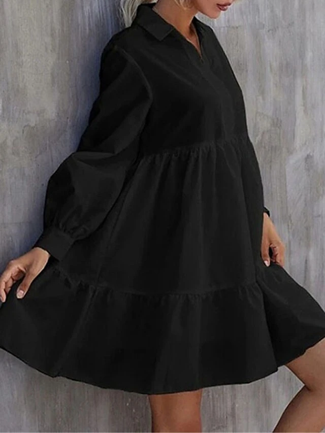 Women’s Shirt Dress Casual Dress Tiered Dress Mini Dress Outdoor Daily Cotton Basic Classic Shirt Collar Ruched Button Long Sleeve Summer Spring Fall 2023 Loose Fit Black White Pure Color S M L XL 2XL