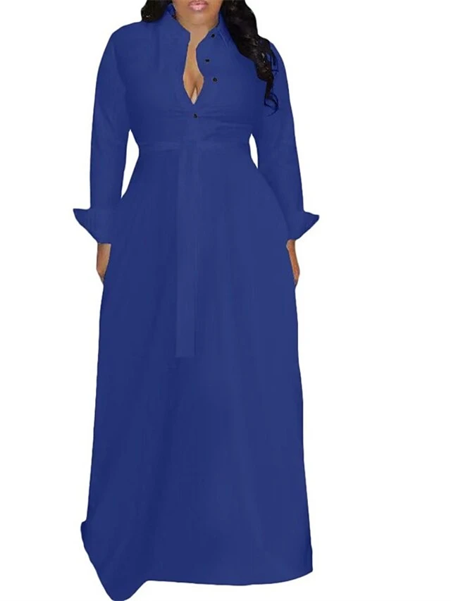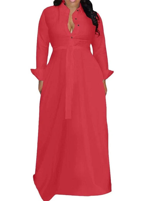 Women’s Shirt Dress Swing Dress White Dress Maxi Long Dress Winter Dress Daily Holiday Polyester Stylish Basic Shirt Collar Button Strappy Long Sleeve Summer Spring Fall 2023 Regular Fit White Pink