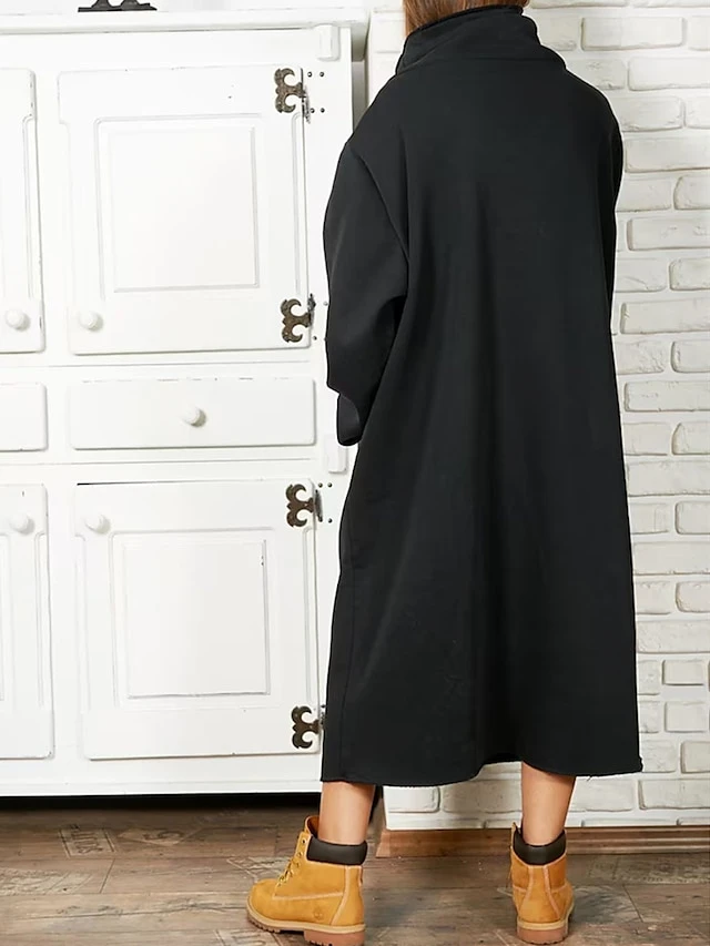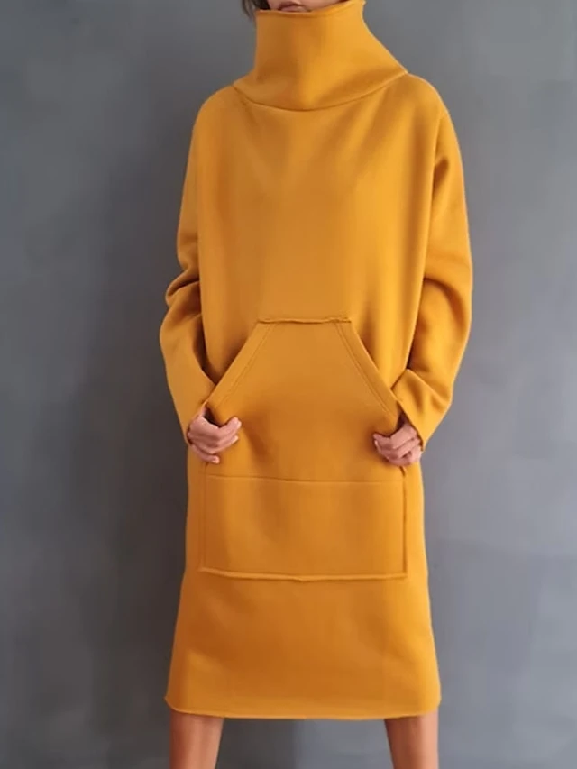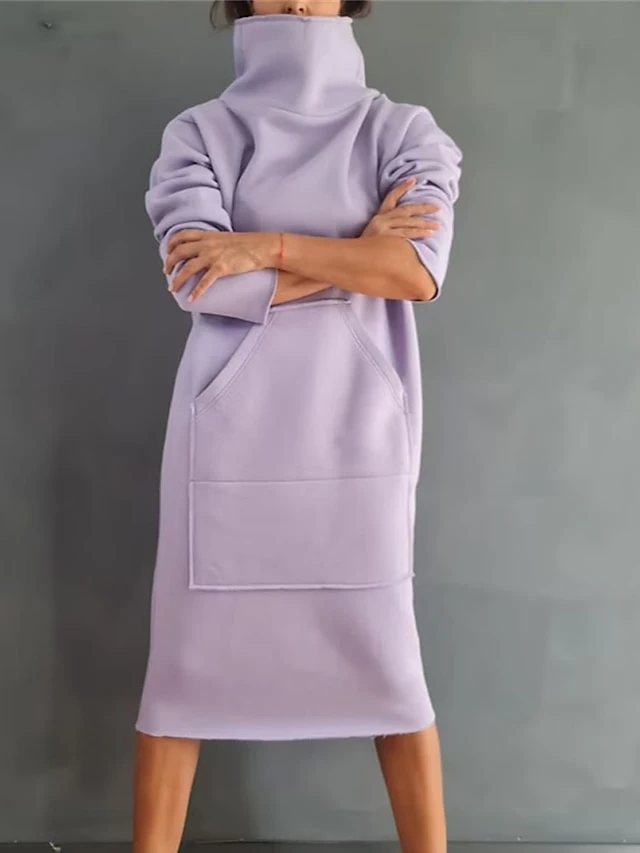 Women’s Sweatshirt Dress Casual Dress Midi Dress Fashion Daily Outdoor Vacation Going Out Turtleneck Pocket Solid Color Regular Fit Black Yellow Purple S M L XL XXL