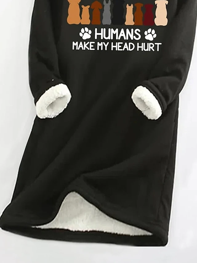 Women’s Sweatshirt Dress Casual Dress Mini Dress Warm Fashion Outdoor Holiday Vacation Crew Neck Print Animal Print Loose Fit Black S M L XL XXL
