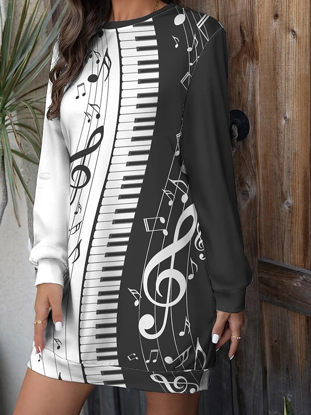 Women’s Sweatshirt Dress Casual Dress Mini Dress Warm Fashion Outdoor Vacation Going Out Crew Neck Print Geometric Regular Fit Black S M L XL XXL