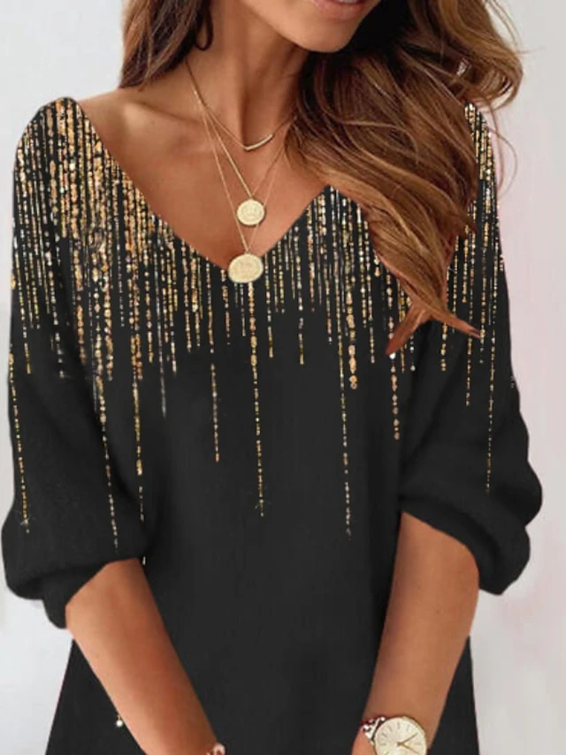 Women’s Sweatshirt Dress Winter Dress Shift Dress Mini Dress Gold 3/4 Length Sleeve Color Gradient Print Summer Spring V Neck Vacation Loose Fit 2023 S M L XL XXL 3XL