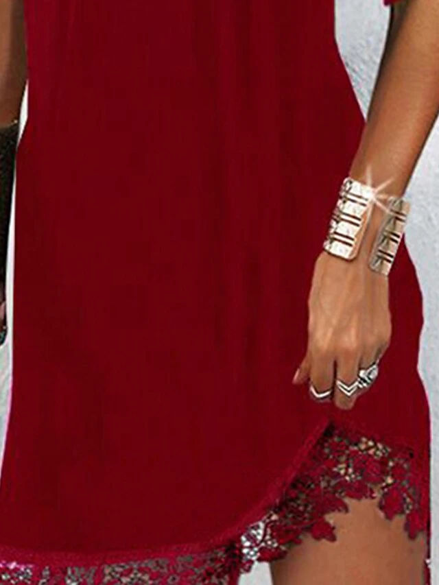 Women’s T Shirt Dress Tee Dress Sheath Dress Mini Dress Black Red Short Sleeve Pure Color Sequins Summer Spring V Neck Stylish 2023 S M L XL 2XL 3XL