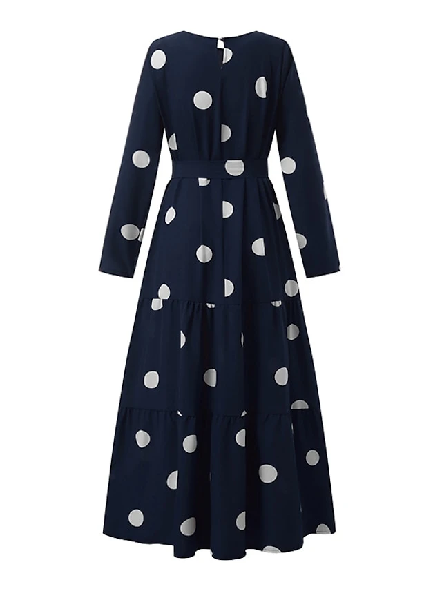 Women’s Vintage Dress Kaftan Dress Polka Dot Dress Long Dress Maxi Dress Yellow Wine Navy Blue Long Sleeve Polka Dot Lace Up Spring Fall Winter Crew Neck Muslim Vacation Loose Fit 2023 S M L XL XXL